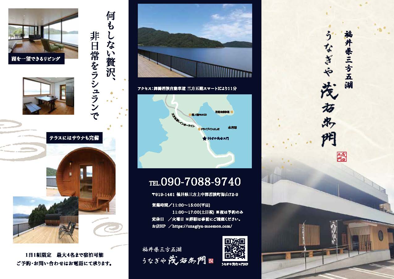 福井県三方五湖に佇む「うなぎや 茂右ェ門」様のパンフレットとコーポレートサイトを制作しました。